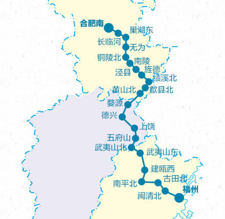 合福高鐵是京福高鐵的重要組成部分,全長(zhǎng)806公里,是國(guó)內(nèi)第四條設(shè)計(jì)時(shí)速350公里的雙線電氣化高速鐵路。作為溝通華中與華南地區(qū)的一條大能力客運(yùn),途經(jīng)安徽、江西和福建三省,由于其線路貫穿武夷山、三清山、婺源、黃山多個(gè)著名旅游景區(qū)而被稱為國(guó)內(nèi)顏值最高的最美高鐵。
