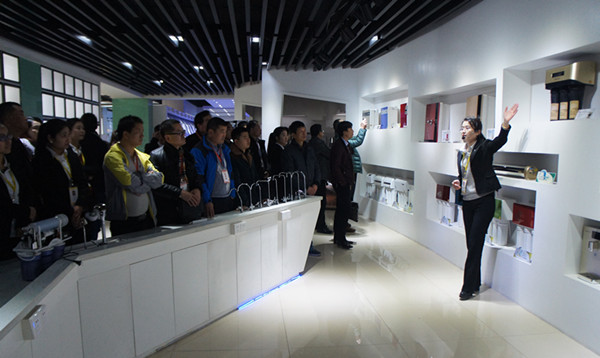 解說員還提到企業自主研發的雙膜專利技術,一機實現凈、飲雙效,并現場為我們演示使用,“污水經凈化由雙龍頭流出,一個日用一個飲用,飲用水可以直接喝!” 說著解說員便端起剛凈化的飲用水直接喝下,前一秒的污水,后一刻就能直接飲用,引得我們眾多參觀者驚嘆、鼓掌。當天,解說員還向我們普及了RO反滲透膜、五級凈化系統等諸多凈水知識,尤為專業的行業分析與產品解讀,解答了我們許多問題,豐富了我們的認知。